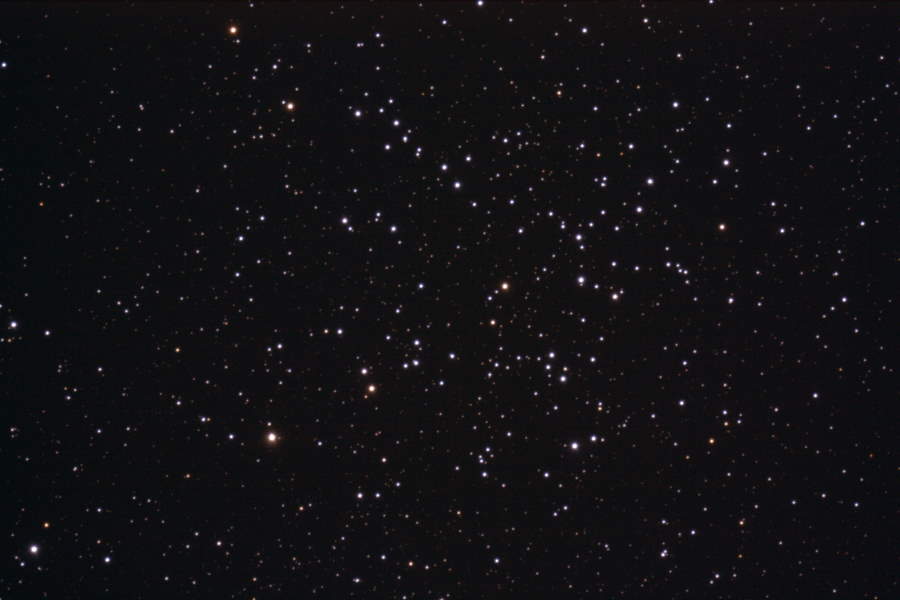Der M38 ist mit einem Alter von ca. 200 Millionen Jahren ein noch recht junger offener Sternhaufen im Sternbild Fuhrmann. |