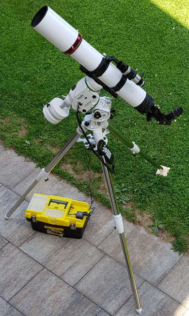 Das Linsenteleskop ist vor allem mit Brennweiten von 200mm bis 1200mm bei Amateurastronomen im Einsatz. Größere Brennweiten führen auch zu immer größeren Linsen, die dann entsprechende Kosten mit sich bringen. Diese "kleineren" Brennweiten sind vielfach bei mittleren bis großen Amateursternwarten (stationär) zusätzlich zu Spiegelteleskopen mit größeren Brennweiten montiert, so dass sowohl großflächige, wie auch kleine Objekte betrachtet / fotografiert werden können. | ![]() |