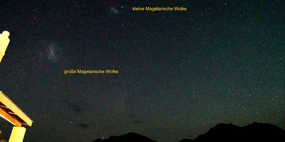 Am Anfang, und hier als letztes dann doch noch je ein Bild, die ich bei klarer Nacht, allerdings ohne Sternwarte oder größeres Equipment, nur mit einer SONY Alpha R II und einem 24mm Objektiv aufgenommen habe. Sie zeigen die Milchstraße kurz nach Sonnenuntergang und die 2 Magelanschen Wolken im zweiten Bild |